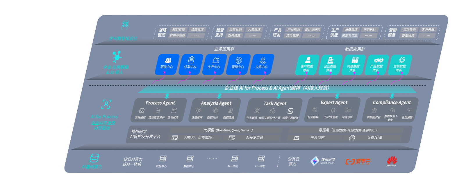 PA旗舰厅问学智车解决方案是一套基于AI技术的汽车行业智能化系统,,,覆盖从底层算力到顶层AI应用的全栈方案。。方案由算力层、、模型层和应用层组成:算力层,,,方案支持多种一体机配置,,,具备云端灵活部署、、、多云适配以及动态优化计算资源的能力;模型层,,PA旗舰厅问学平台版提供了企业级AI应用一站式构建与管理平台,,,支持基于后训练强化技术的汽车企业专属模型的训练、、、评测和运营;应用层,,PA旗舰厅问学DeepSeek版提供包括超级员工、、、、智能招采、、、、智能营销、、、智能客服、、、、AI for BI等一系列解决方案,,可助力汽车行业实现数字化转型,,让管理更智能、、、、响应更敏捷。。