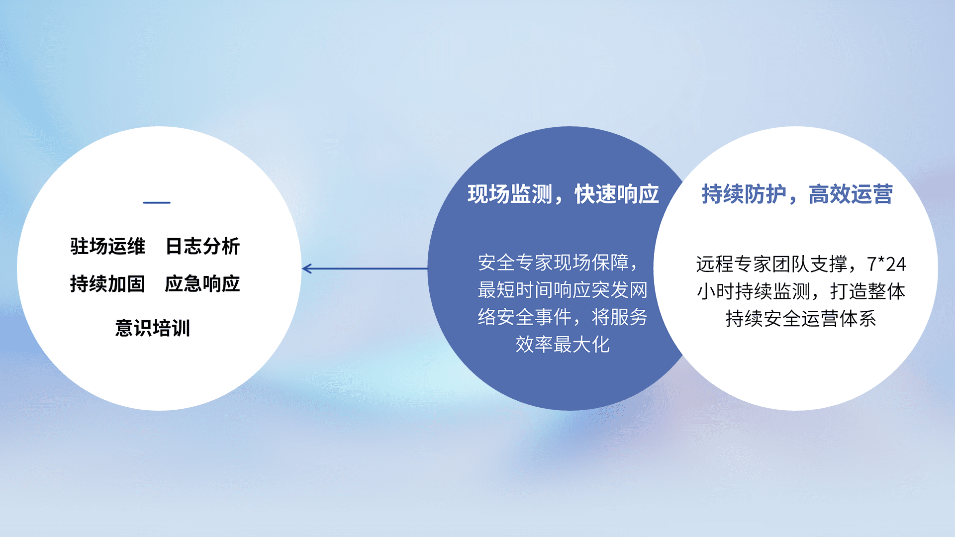针对客户行业特性,,,提供专属的一站式安全管理服务,,,帮助客户全面感知网络空间威胁,,,,通过安全专家的线上、、、、线下防护支持,,,实现风险闭环,,将安全保障常态化,,,为客户打造常态化安全运维运营服务。。。